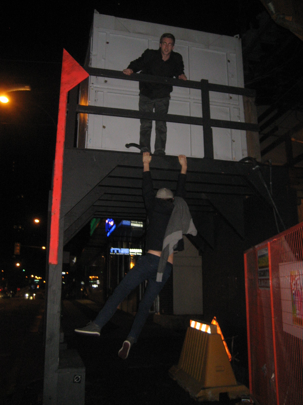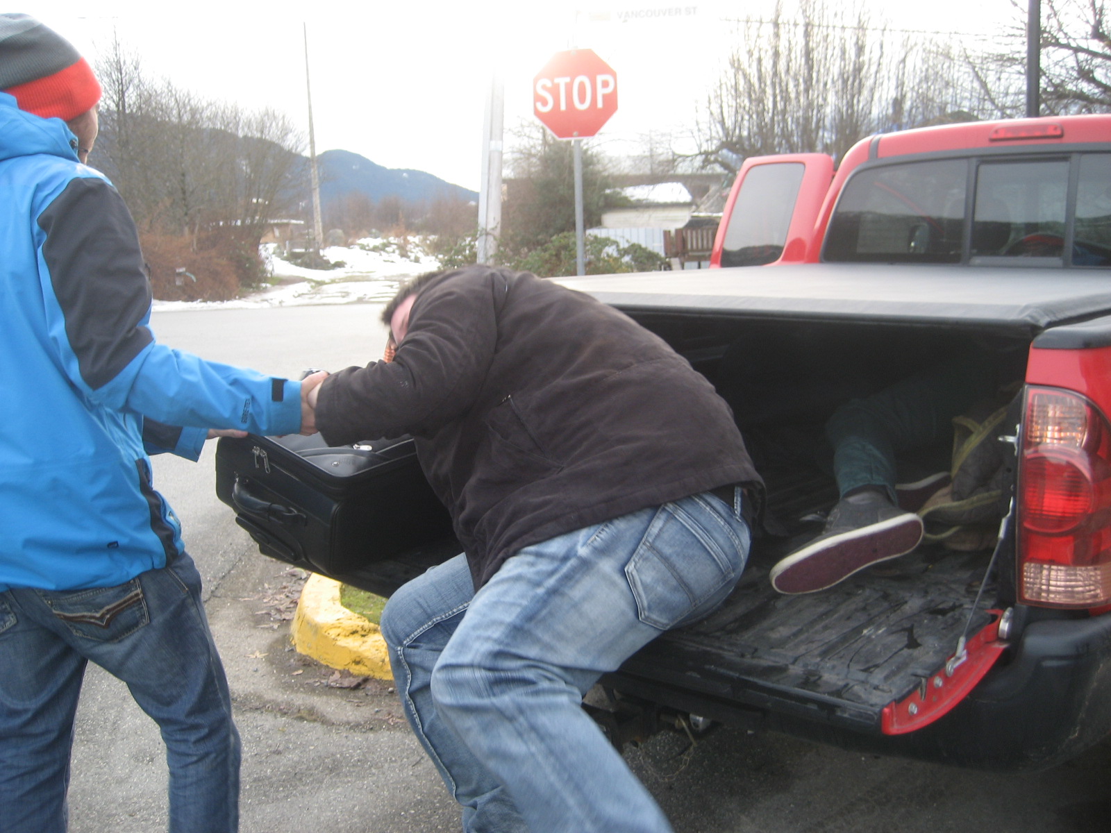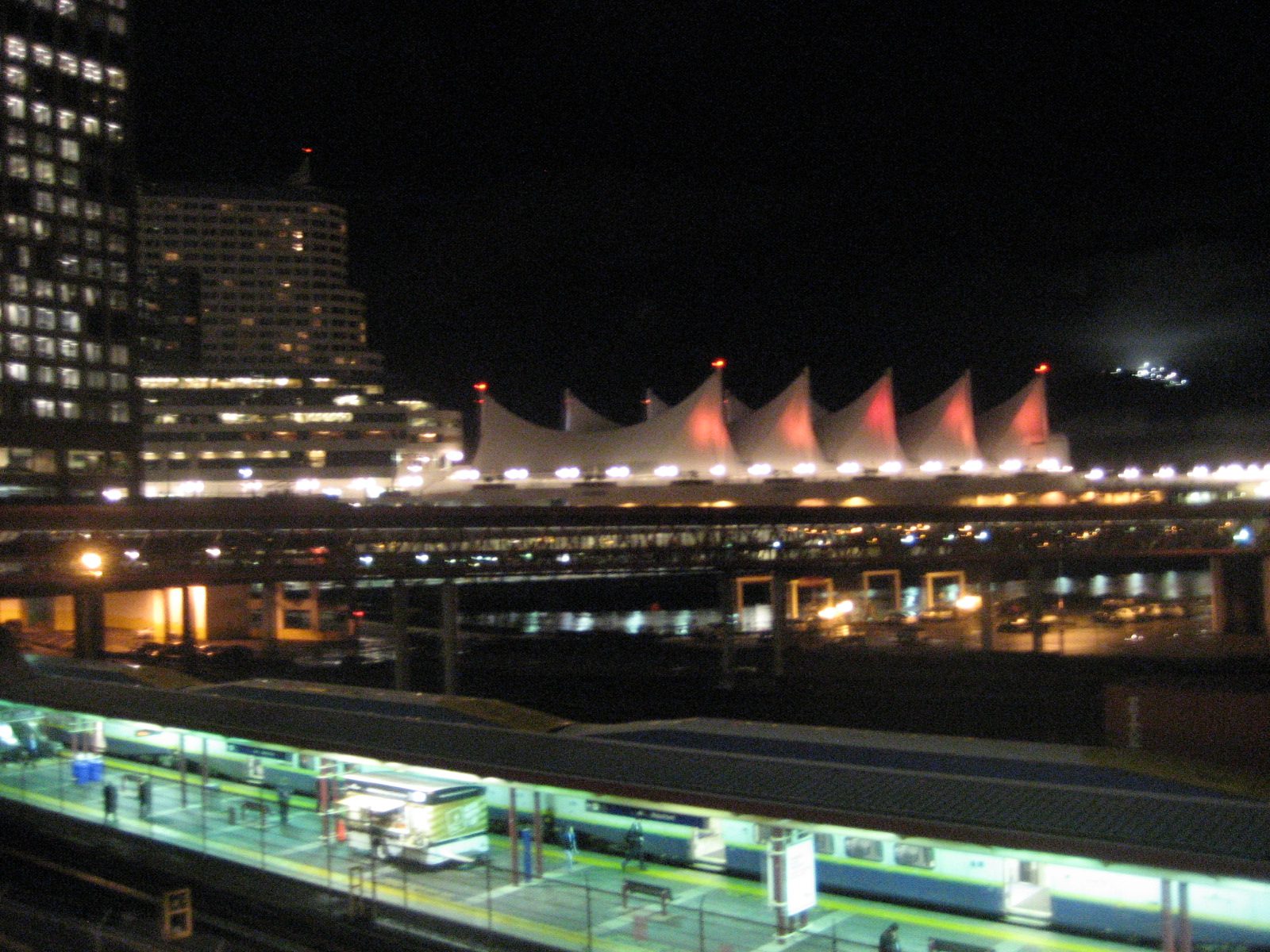 Interesting view of the skytrain, coal harbour, Canada place convention centre, and Grouse Mountain in the background. Ah, and later, on the way home from our last party nigth in Vancouver…just hanging on… before heading back to White Rock for a couple days, and then all the way back to life at my ‘other’ home , Edinburgh…