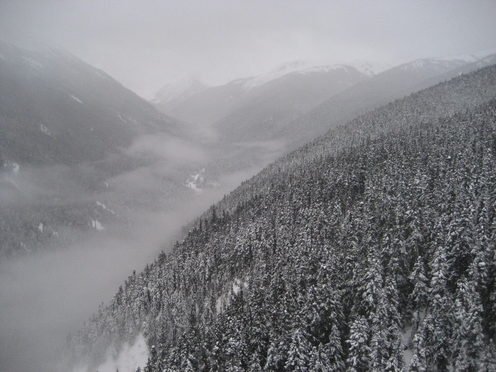 Typical heavy clouds when wanting to take some scenic shots, but in this case the pic worked out pretty cool of the valley between Whistler and Blackcomb mountains, from the Peak to Peak gondola!